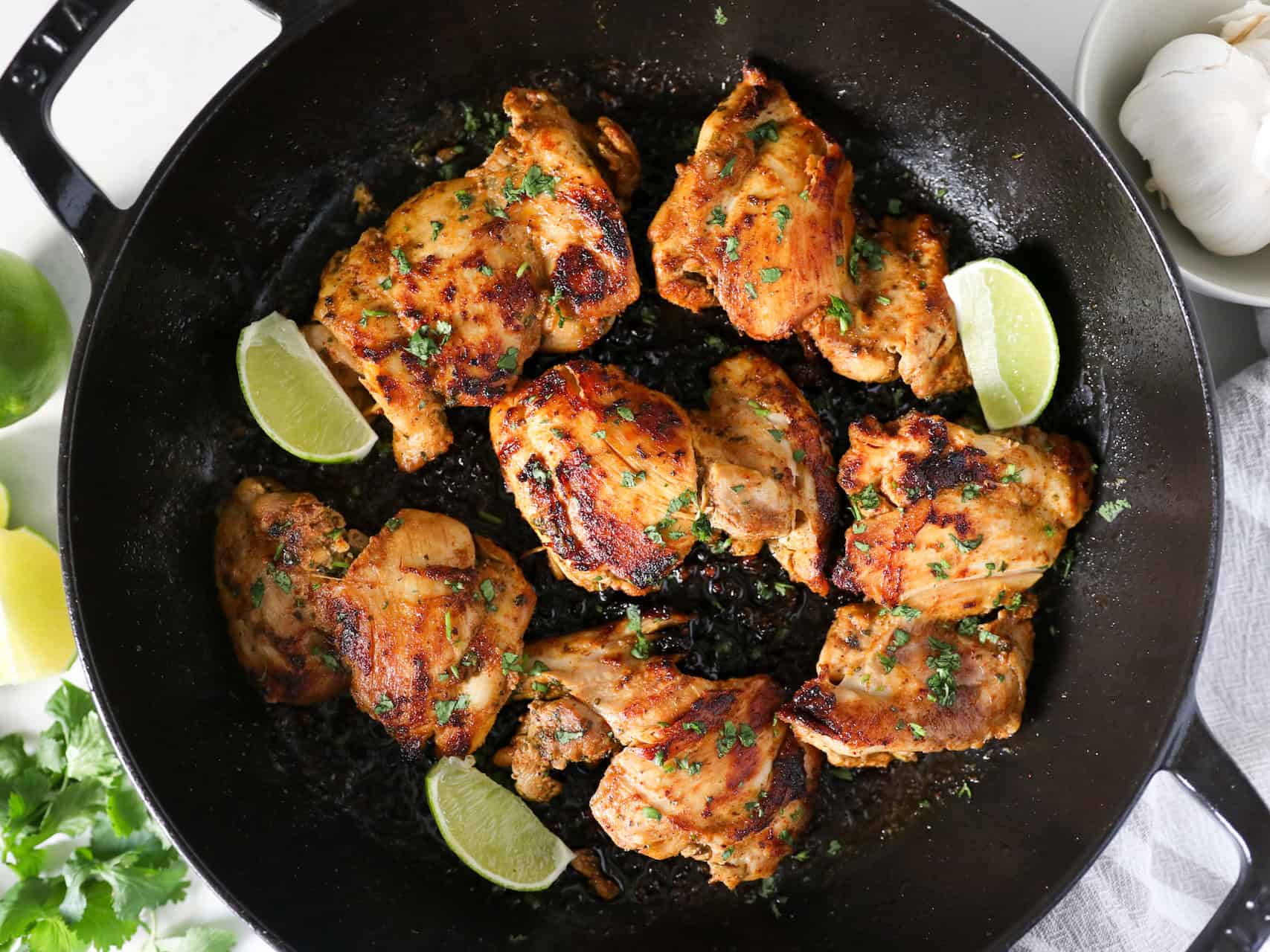 - You’ll need to purchase 2 limes. One to zest and juice for the marinade and the second lime is needed for serving. Adding extra fresh squeezed lime juice over the cooked chicken right before serving is a key step! 😉